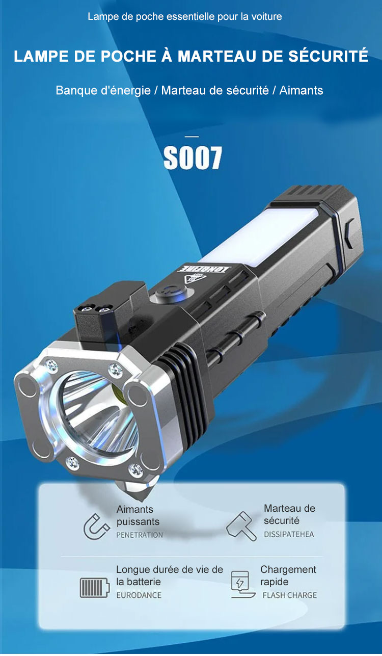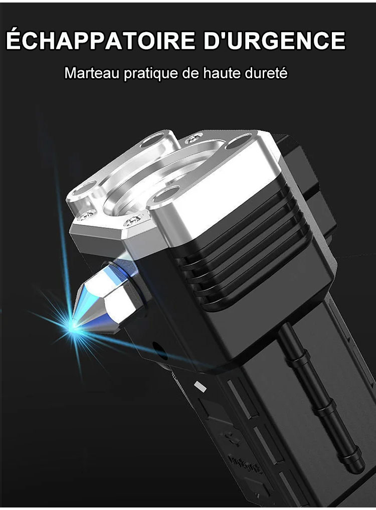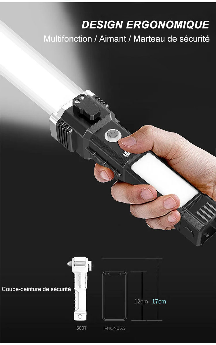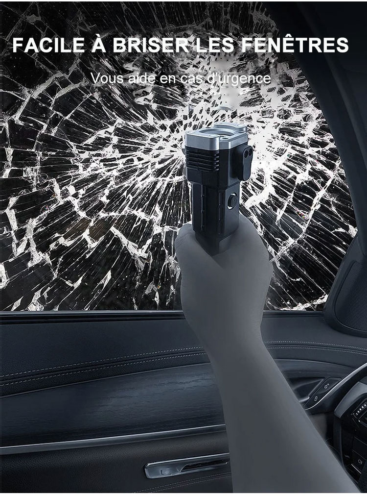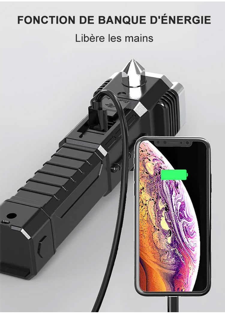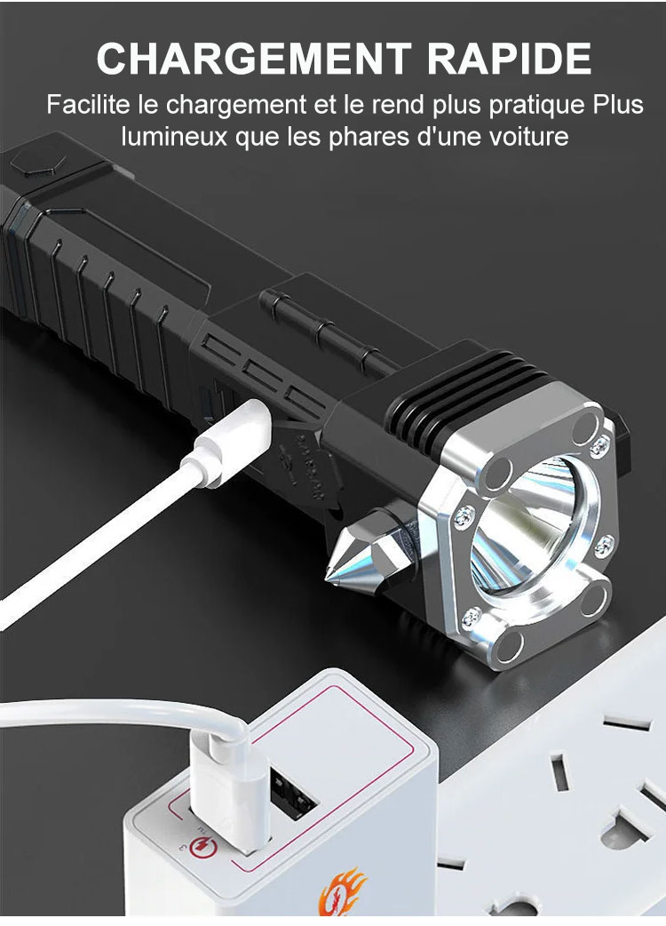Lampe torche de sauvetage rechargeable longue portée pour voiture avec marteau, coupe-vitre et ceinture de sécurité Chargeur rapide USB mobile intégré Power Bank