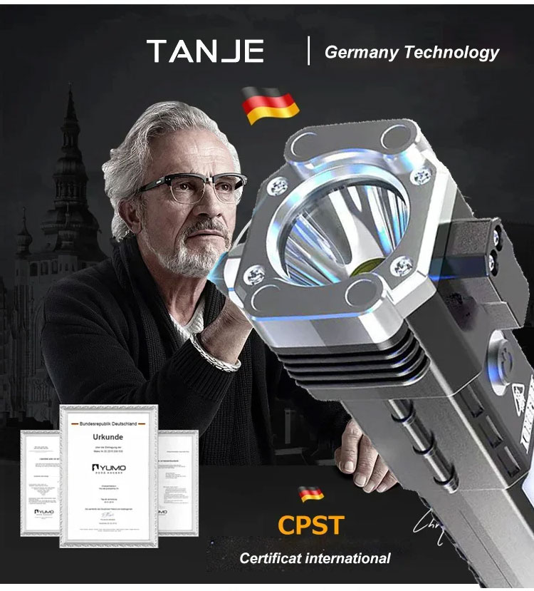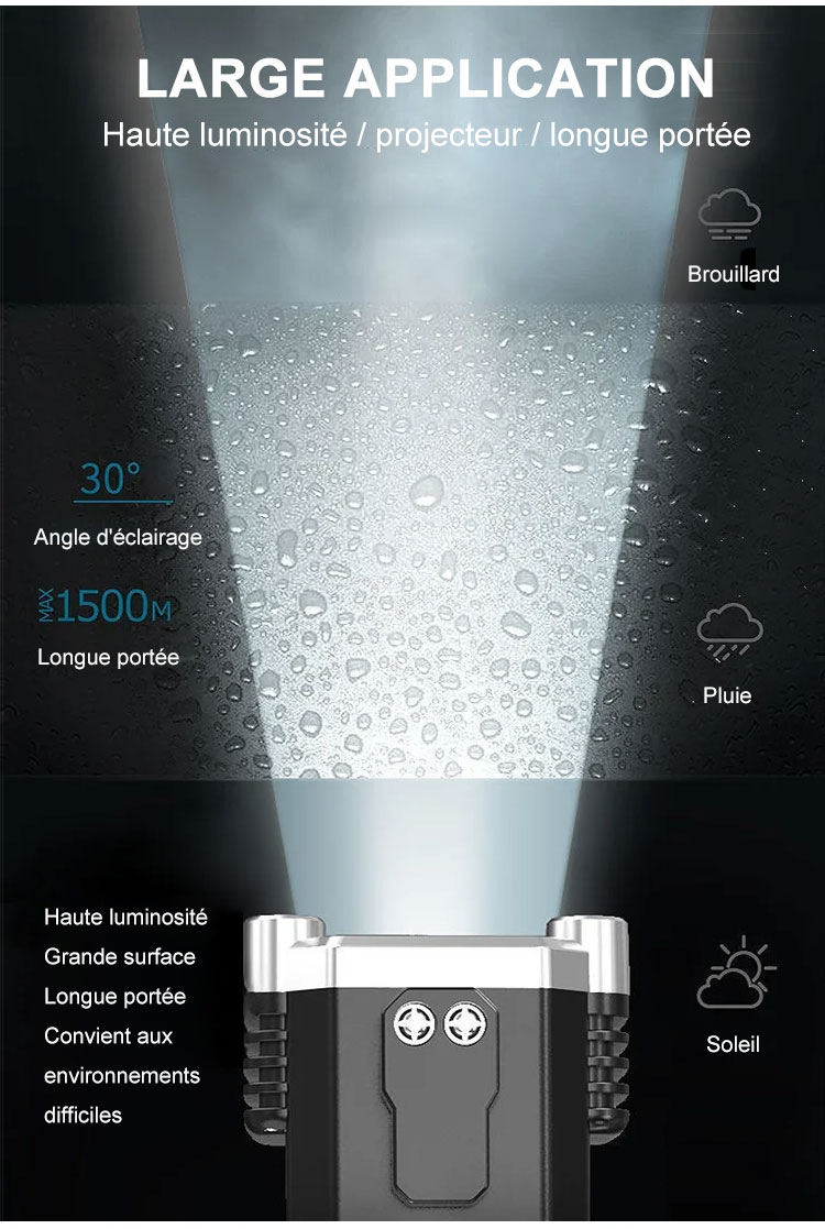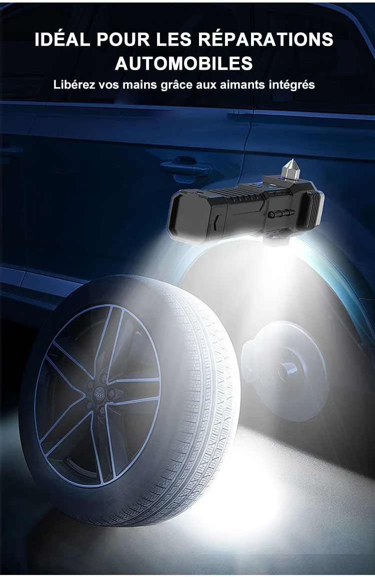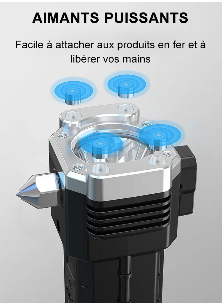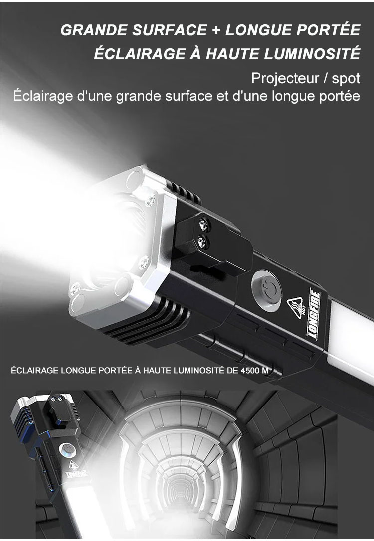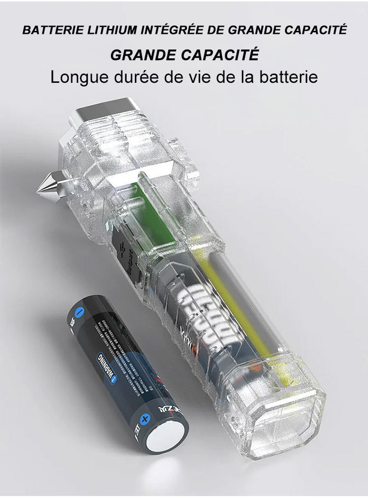 Lampe torche de sauvetage rechargeable longue portée pour voiture avec marteau, coupe-vitre et ceinture de sécurité Chargeur rapide USB mobile intégré Power Bank